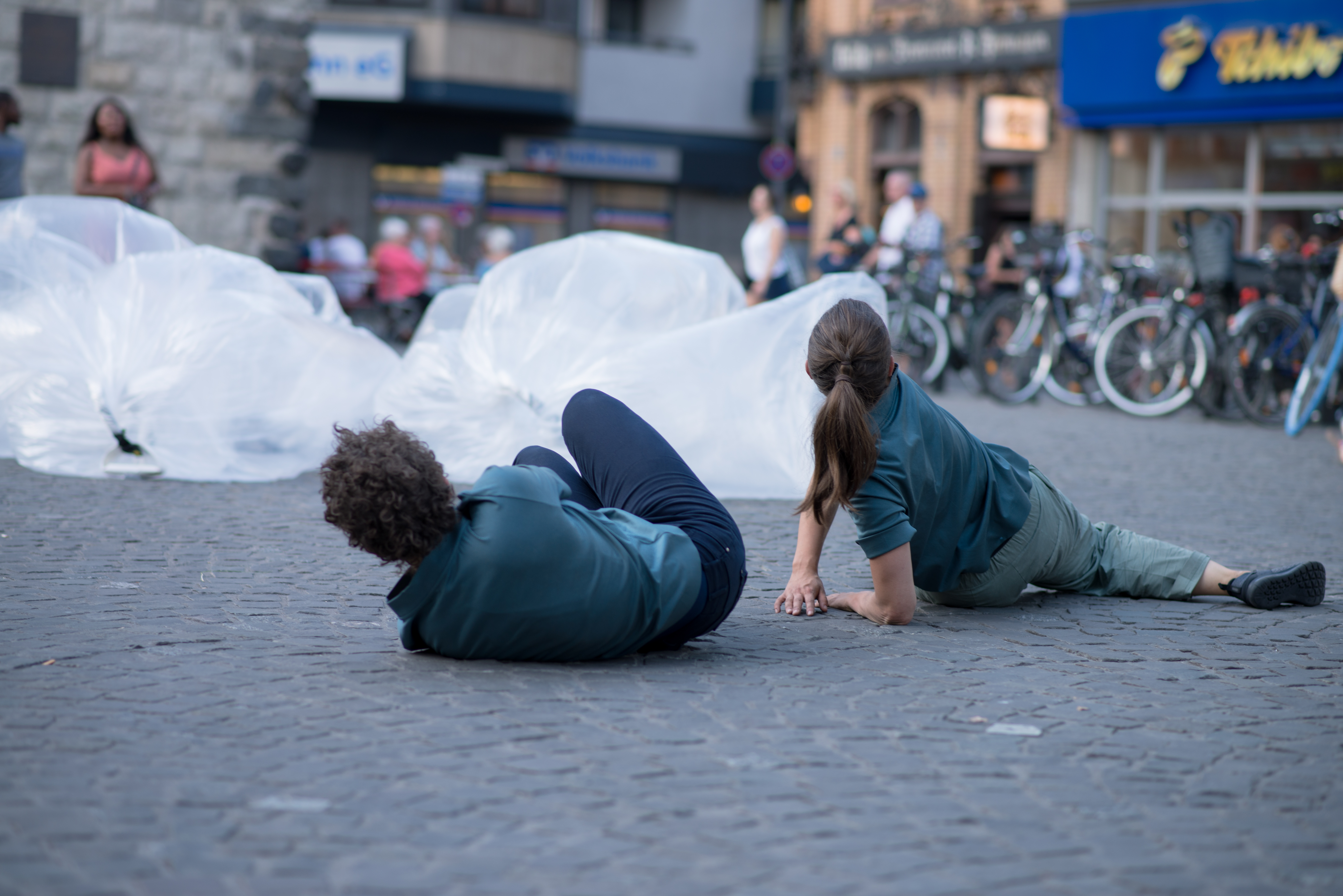 paraproximity interagiert innovativ an der Schnittstelle von Performance, Klang, Material und öffentlichem Raum. Das künstlerische Team entwickelt performative und multisensorische Interventionen, die den öffentlichen Raum zu seinem Umgang mit Intimität, Geborgenheit und Ruhe befragen.