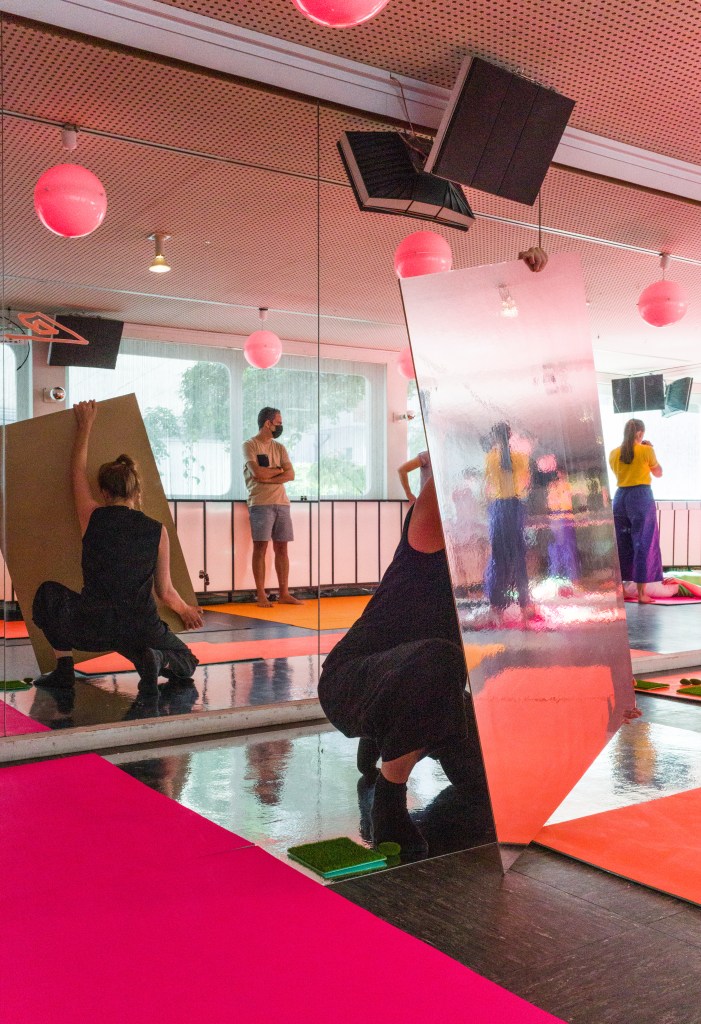Man kennt sie aus dem Zoo und neuerdings als hippes Accessoires der Wohnungseinrichtung: Terrarien, die die exotischen Lebenswelten pflanzlicher und tierischer Lebewesen auf ein handliches Maß schrumpfen, zähmen, beobachtbar und alltagstauglich verfügbar machen. Terrarien ermöglichen Beobachter:innen einen geschützten Einblick in eine ganz andere Welt. Zugleich funktionieren Terrarien idealerweise als ein sich selbst erhaltendes, von der Außenwelt abgeschirmtes Ökosystem. Mit dem Eindringen äußerer Elemente in diese Welt hinter Glas geht zumeist Kontamination einher – sprich: die ideale Isolation wird durch Austausch, Kontakt, Berührung und Interaktion aufgehoben, das System kippt und muss sich neu arrangieren. Vom Wunsch sich die Welt verfügbar zu machen Mit der Eröffnung ihres Terrariums im Kölner Stadtraum gehen die Künstler:innen aus den Bereichen Tanz, Klangkunst und Szenografie zunächst dem Begehren nach einer regulierbaren Miniaturwelt nach, um dieser im nächsten Schritt ihre Gewissheit zu entziehen. Sie lassen ein Habitat aus Performer:innen, Publikum, Szenografie und Klang erwachsen, das aufeinander reagiert, sich einschwingt und dennoch feine Risse produziert, durch die das Draußen eintreten und das Innen nach Außen entschwinden kann.