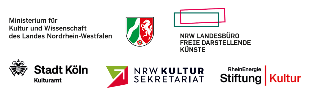 Gefördert durch: Kulturamt der Stadt Köln, Ministerium für Kultur und Wissenschaft des Landes NRW, NRW Landesbüro Freie Darstellende Künste, NRW KULTURsektretariat, RheinEnergieStiftung Kultur. Mit Dank an CCCC e.V., Bürgerhaus Kalk, Sozialraumkoordination Kalk.